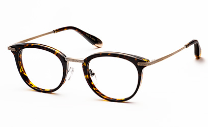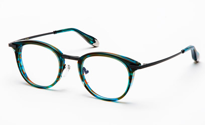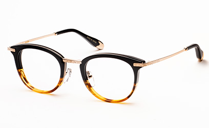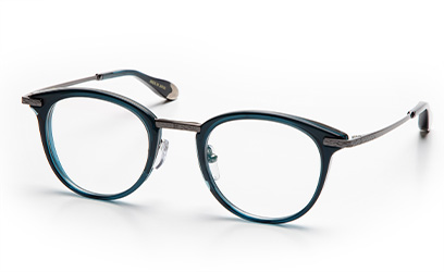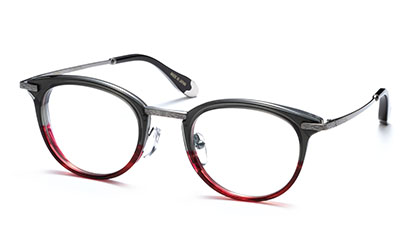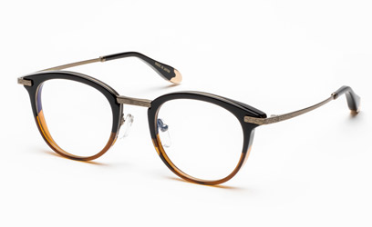 8mm厚のオリジナルアセテート生地をフロントに用い、アクセントにメタルパーツを使ったコンビネーションフレームです。シェイプは普遍的なボストンタイプ。年齢・性別を問わずに選んで頂けるデザインにしました。テンプルにはβチタンを採用し適度なバネ性を持たせ、モダン小口部・バチ先の飾りにも統一感のあるプレス模様を入れました。