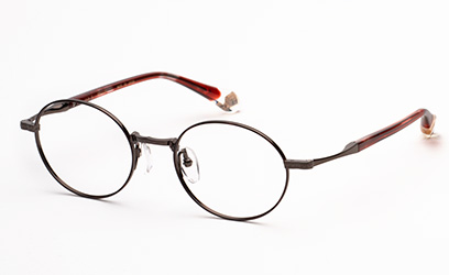 杉本圭のベーシックラインとして、シンプルで掛け心地の良さを追求した普遍的なデザインのシリーズ。リム正面には、FC/七宝を用いたカラーリングを施しました。テンプルとリンクしたカラーは、KS-109とはまた異なった雰囲気に仕上げています。レンズ内径は、KS-109と同じなので、この両モデル間の互換性があります。テンプルにはβチタンを用い、部分的に薄く仕上げる事で適度なバネ性を出し、着脱時にフロント部分にかかる負荷を軽減させると共に、ブリッジ部分にはオリジナル「板バネパッド」を採用し、さらに快適なフレームに仕上げています。