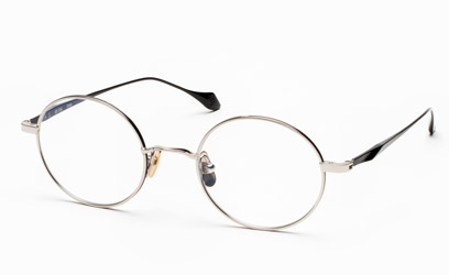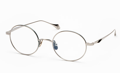 細身で軽いラウンドタイプで、掛ける人の年代や性別を選ばないフレームです。リム周りに加えたアクセントカラーの七宝がシンプルすぎない美しさを演出しています。