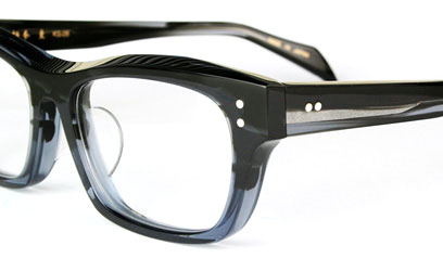 厚さ8mmのアセテート生地にエッジを効かせ、立体的に彫り上げたスクウェアタイプのフレーム。
