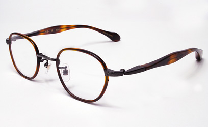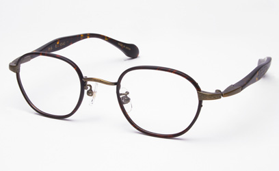 クラシカルなウエリントンタイプのメタルフレームにセル巻き仕様です。テンプルはKS-54タイプを採用しました。