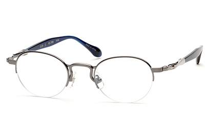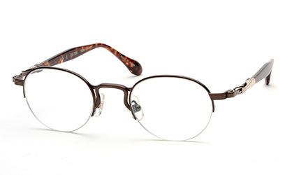 デザインはブリッジ・リム・ヨロイなどをラインで構成しています。そしてテンプルはビンテージフレームなどにも用いられるテンプル長の収縮するデザインモチーフを採用し、セル手としてまとめています。